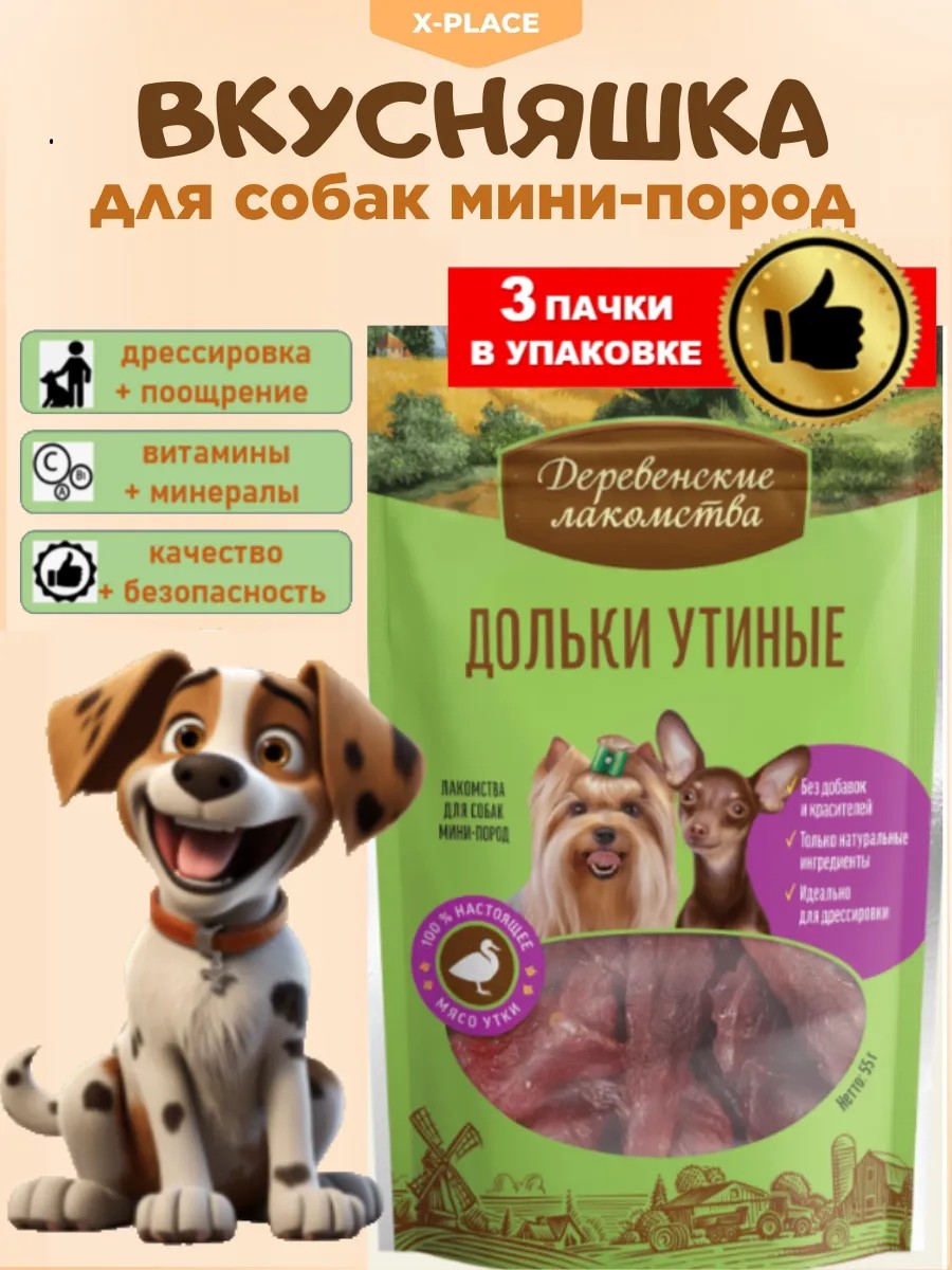 Деревенские лакомства Лакомства для собак мини пород 3 шт Дольки утиные