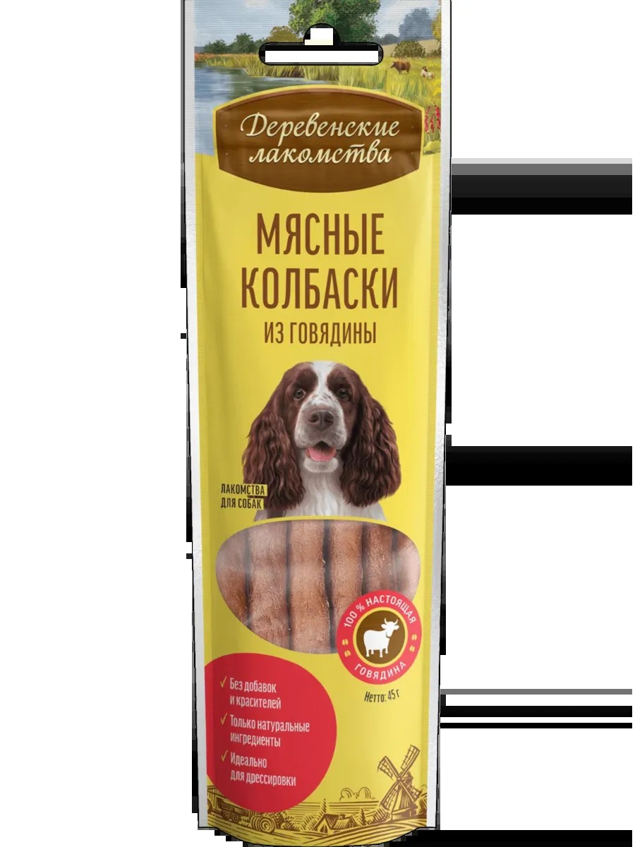 Деревенские лакомства Лакомства для собак Мясные колбаски из говядины 45г