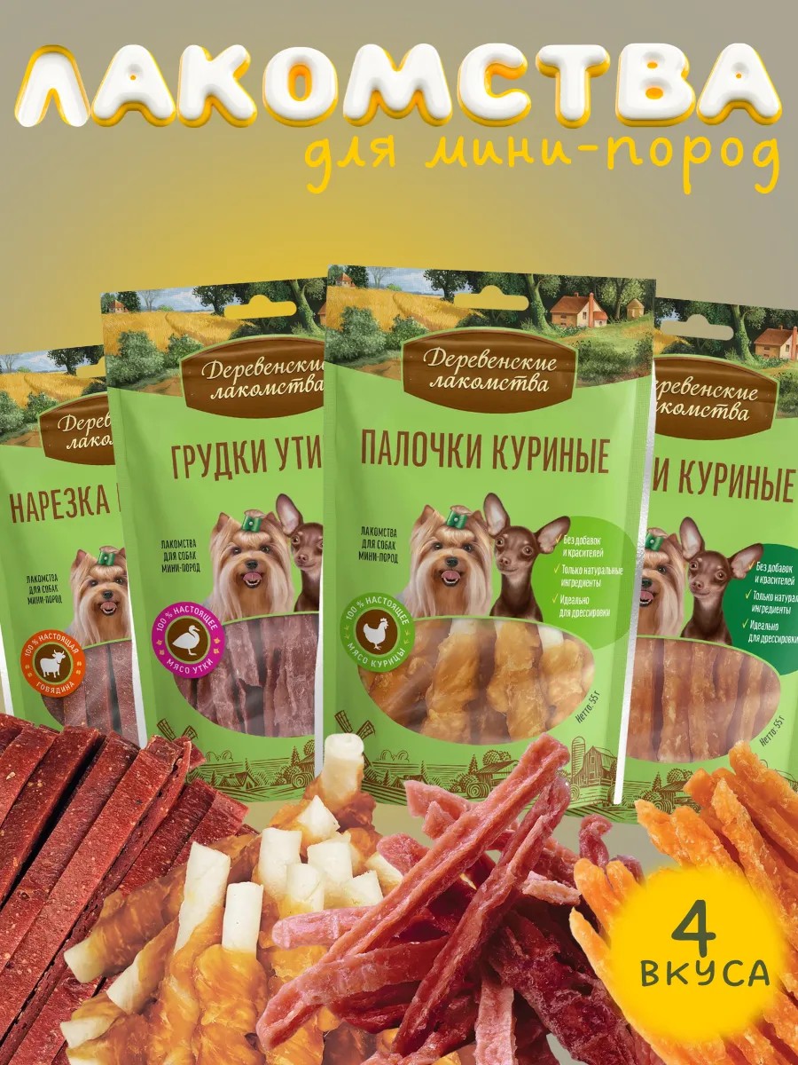 Деревенские лакомства Лакомства для собак мал.пород комплект ассорти нарезки 4х55г