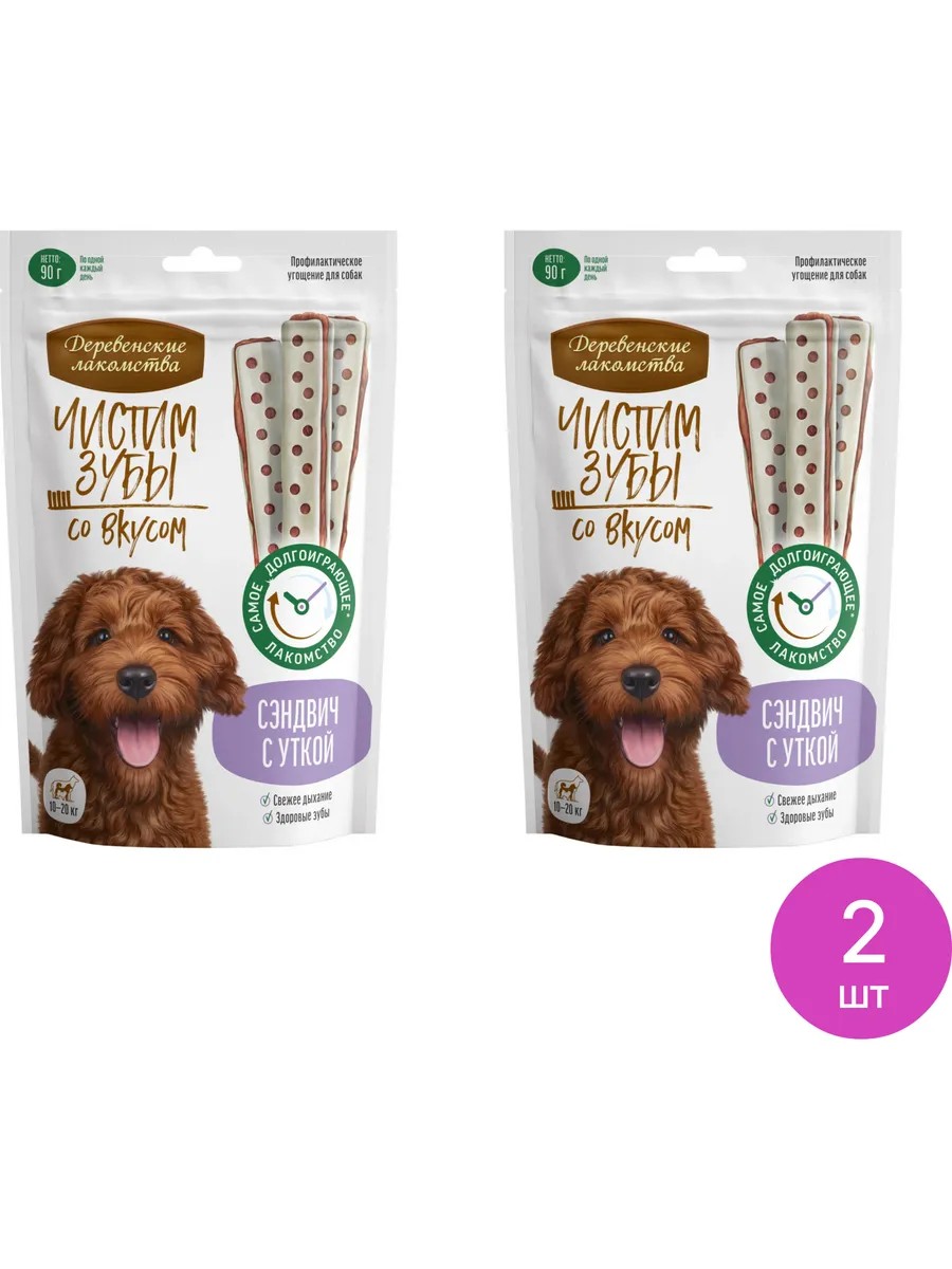 Деревенские лакомства Лакомство для собак Чистим Зубы сэндвич с уткой 90г, 2 шт