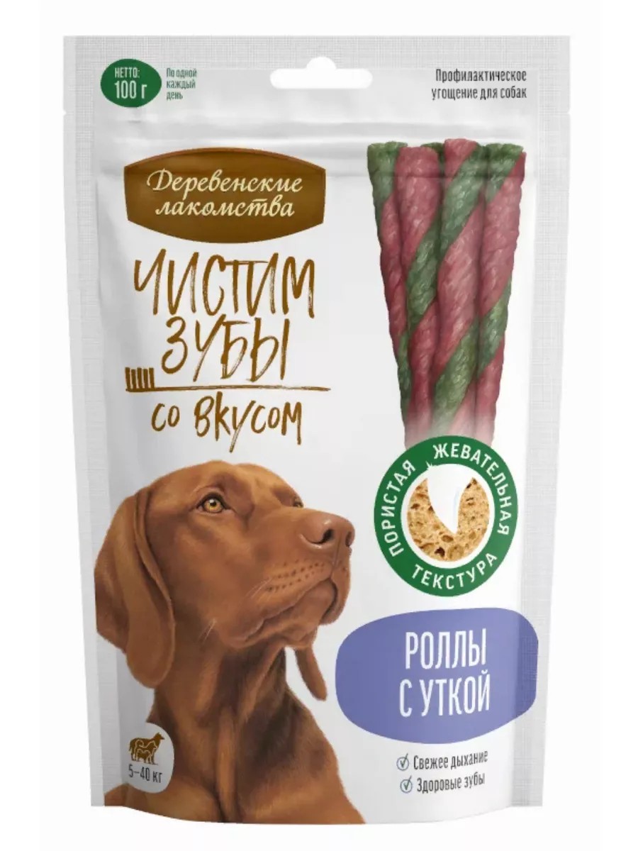 Деревенские лакомства Лакомство для собак Чистим зубы Роллы с уткой, 100г
