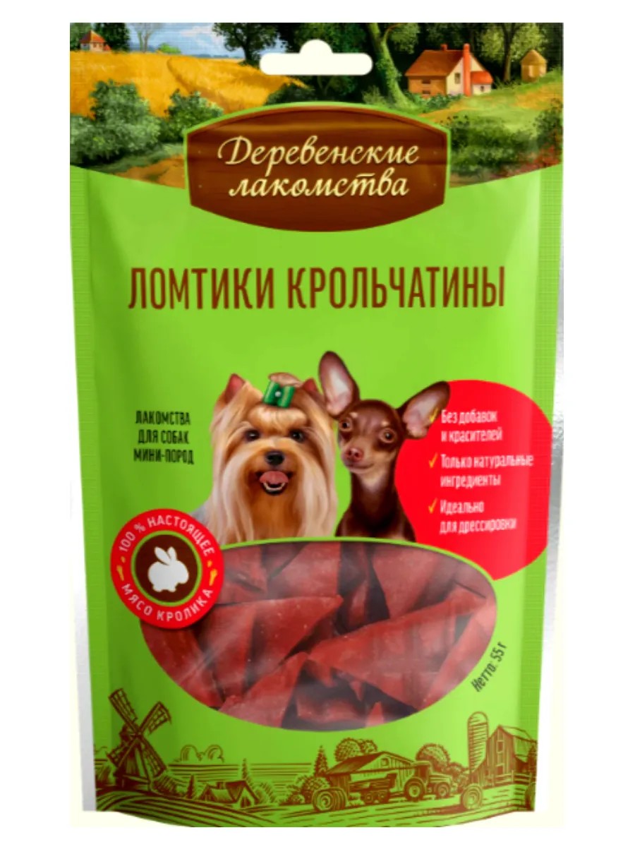 Удивите своего любимого питомца вкусняшкой "Ломтики крольчатины" Деревенские лакомства. Это полезные лакомства, обогащенные витаминами и менералами для собак мелких и средних пород. Лакомства идеальны для разных целей: дрессировки, чистки зубов или как просто угощение для вашего питомца. Они имеют небольшой размер, что делает их идеальными для маленьких питомцев.