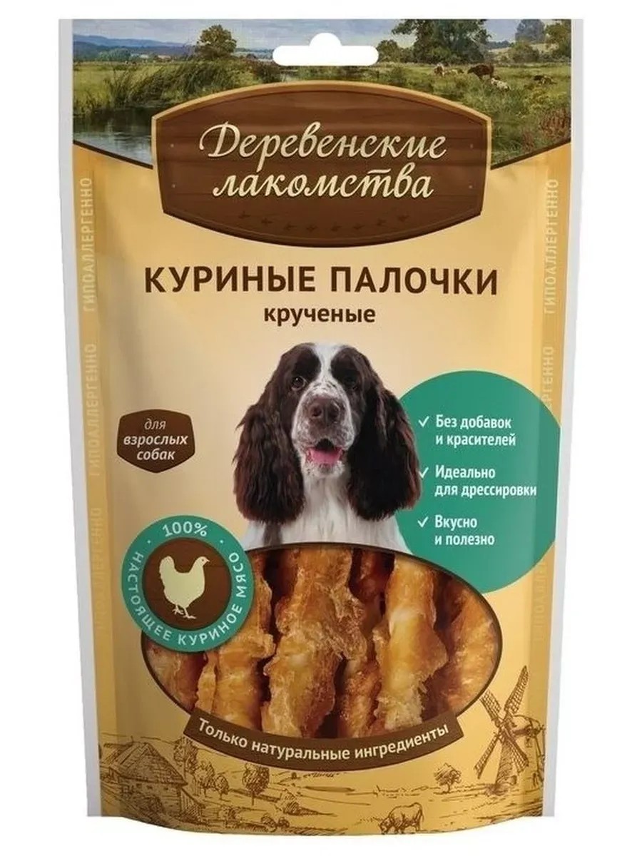 Деревенские лакомства Лакомство для собак Куриные палочки крученые, 90 г