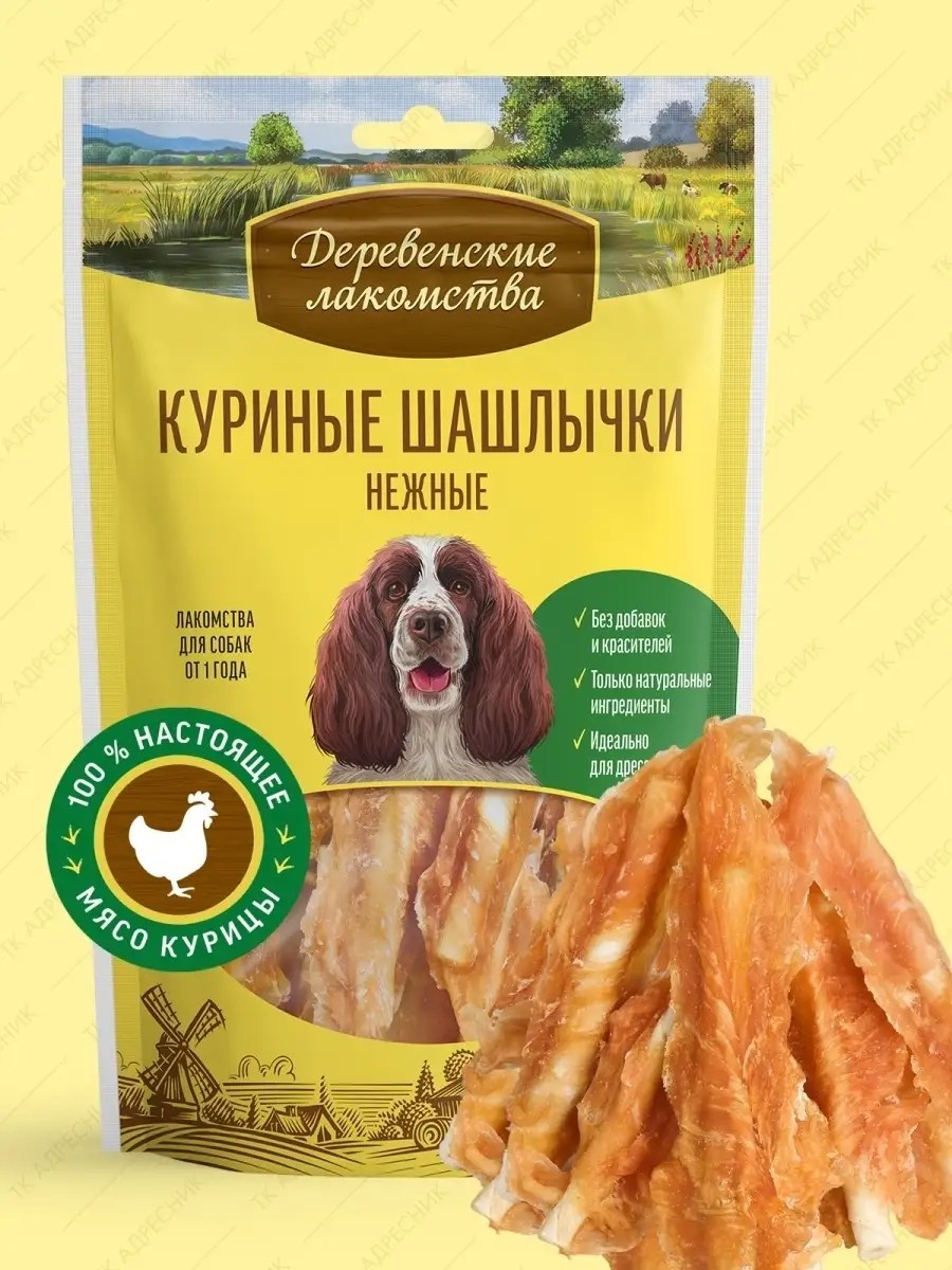 Деревенские лакомства Лакомство для собак "Куриные шашлычки нежные", 90 гр