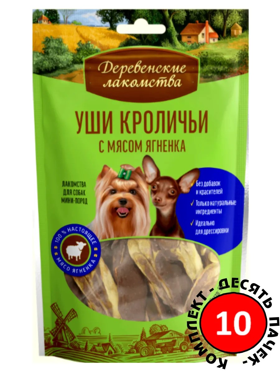 Деревенские лакомства Лакомство для собак уши кроличьи ягненок 10 шт