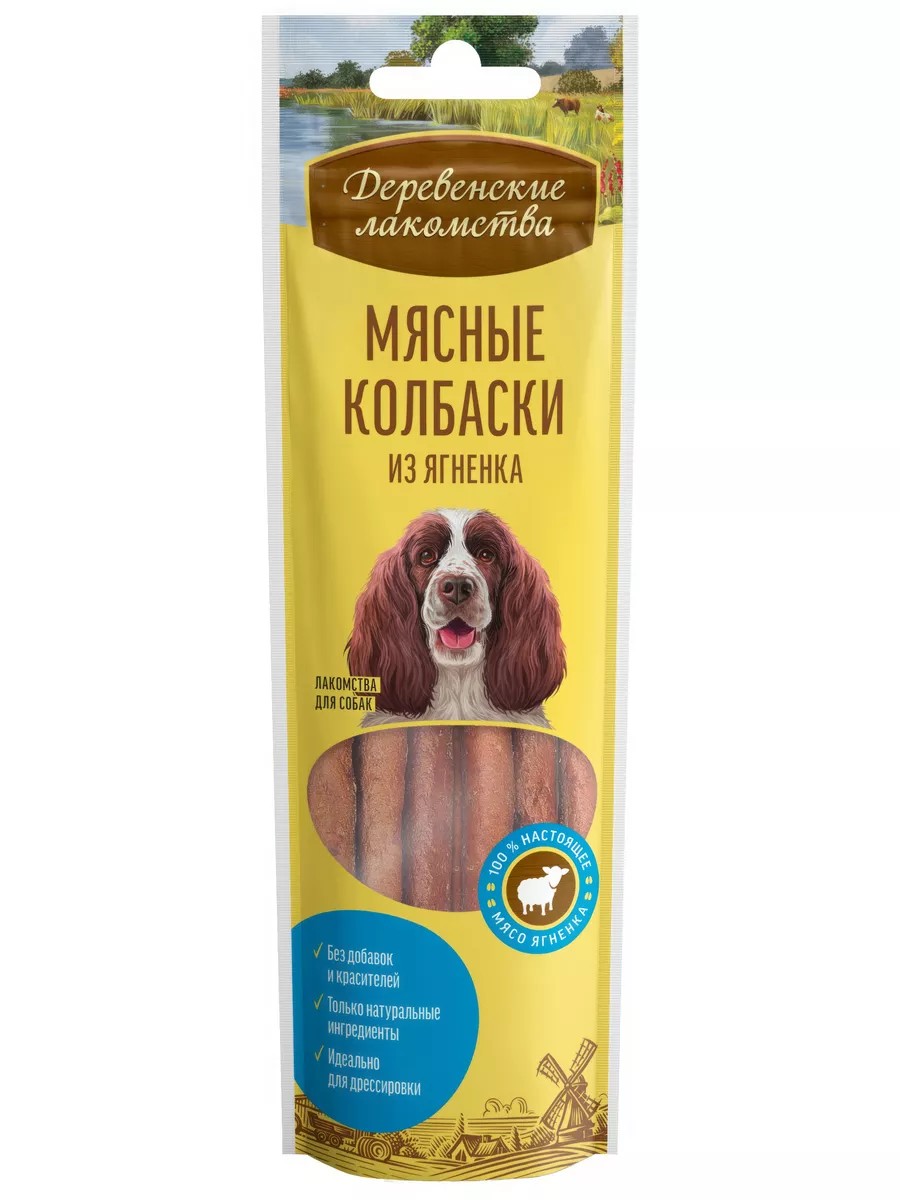 Лакомство Деревенские лакомства для собак, мясные колбаски из ягненка, 45 г. Мясные колбаски из ягненка для собак (100% мясо).