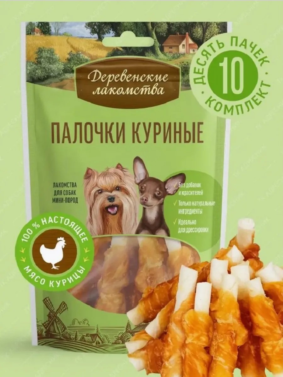 Деревенские лакомства Лакомство для собак мини-пород "Палочки куриные", 10 шт
