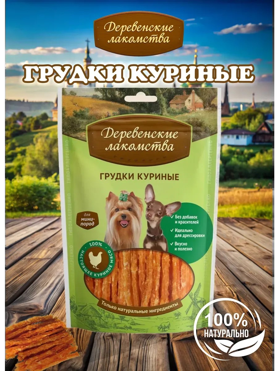 Деревенские лакомства Лакомство для Собак Мини-пород, Грудки Куриные, 55 гр