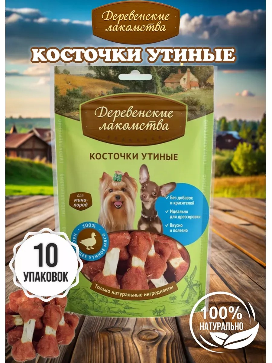Деревенские лакомства Лакомство для Собак Мини-пород, Косточки Утиные ,55г.*10шт