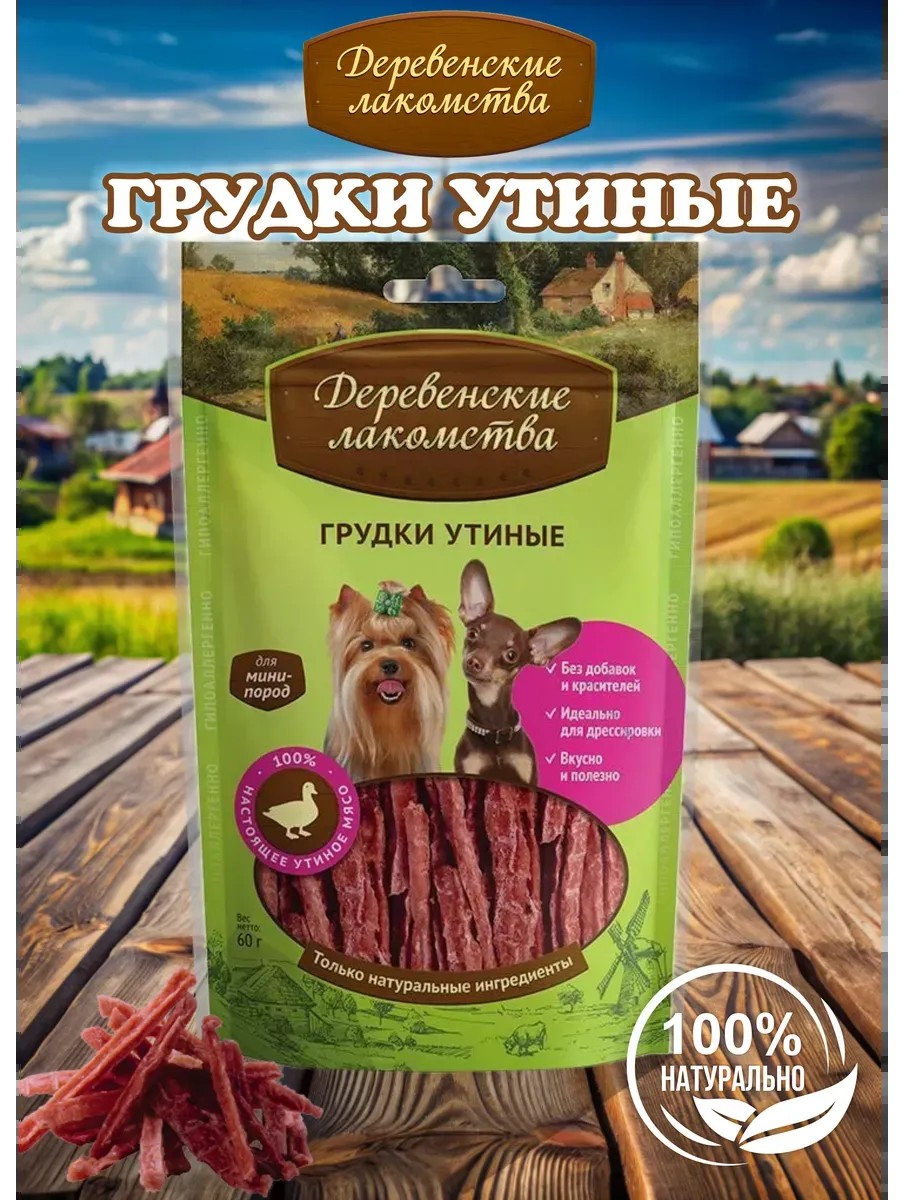 Деревенские лакомства Лакомство для Собак Мини-пород, Грудки Утиные, 55 гр.