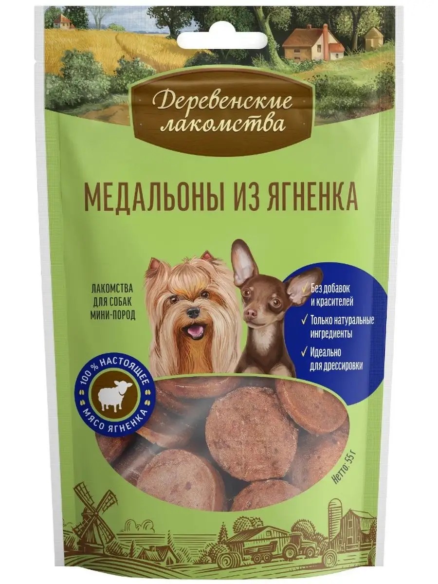 Деревенские лакомства Лакомство для собак мини-пород Медальоны из ягненка, 55 гр