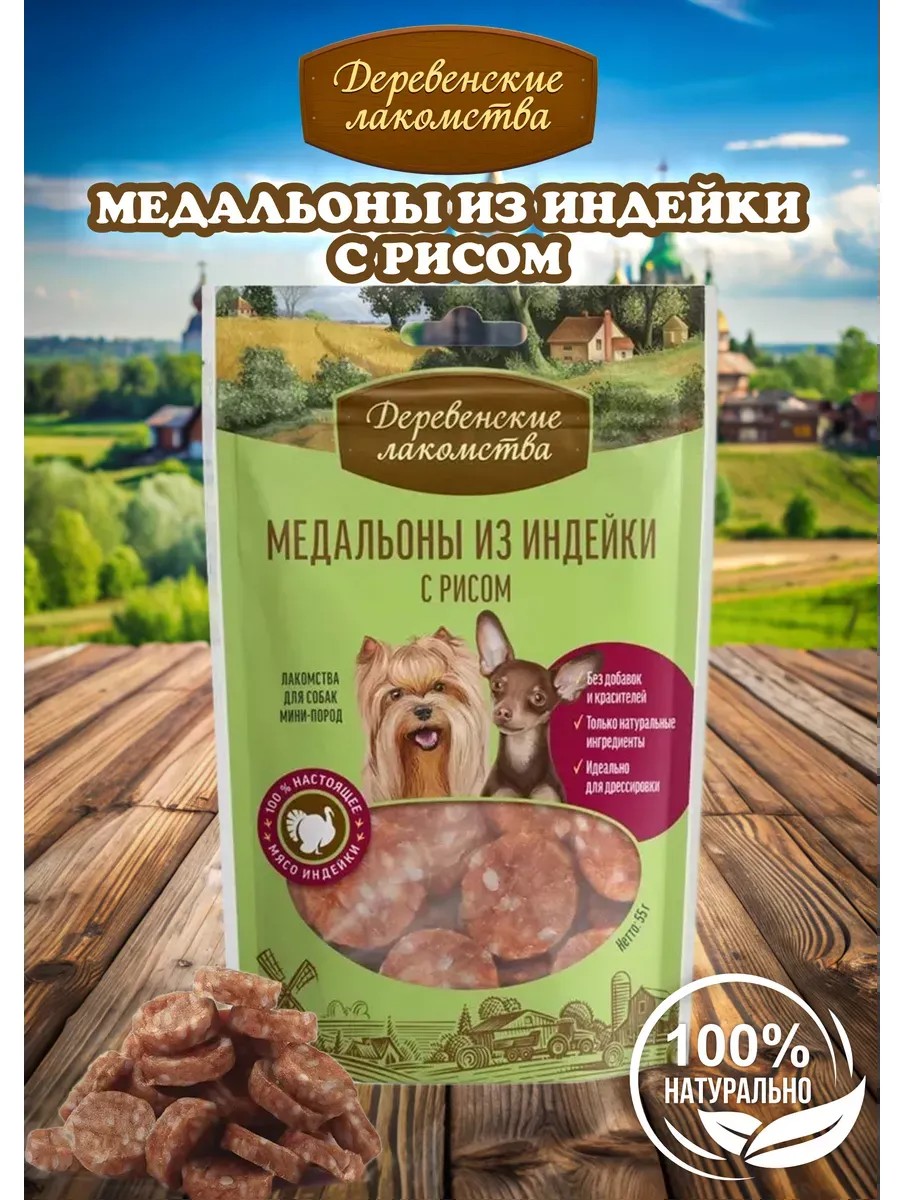 Деревенские лакомства Лакомство для Собак Мини-пород, Медальоны Индейки,55 г.
