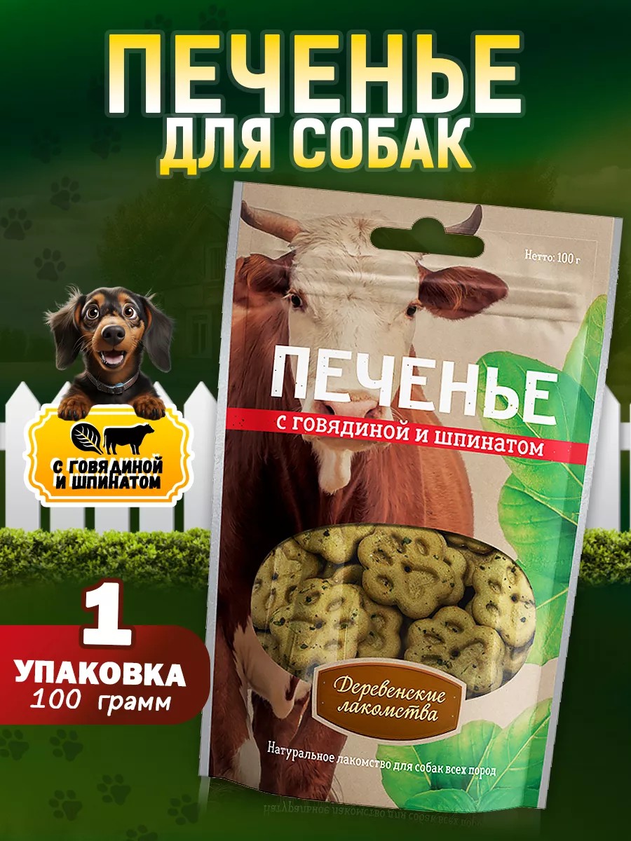 Деревенские лакомства Лакомства для собак Печенье с говядиной и шпинатом, 1 уп