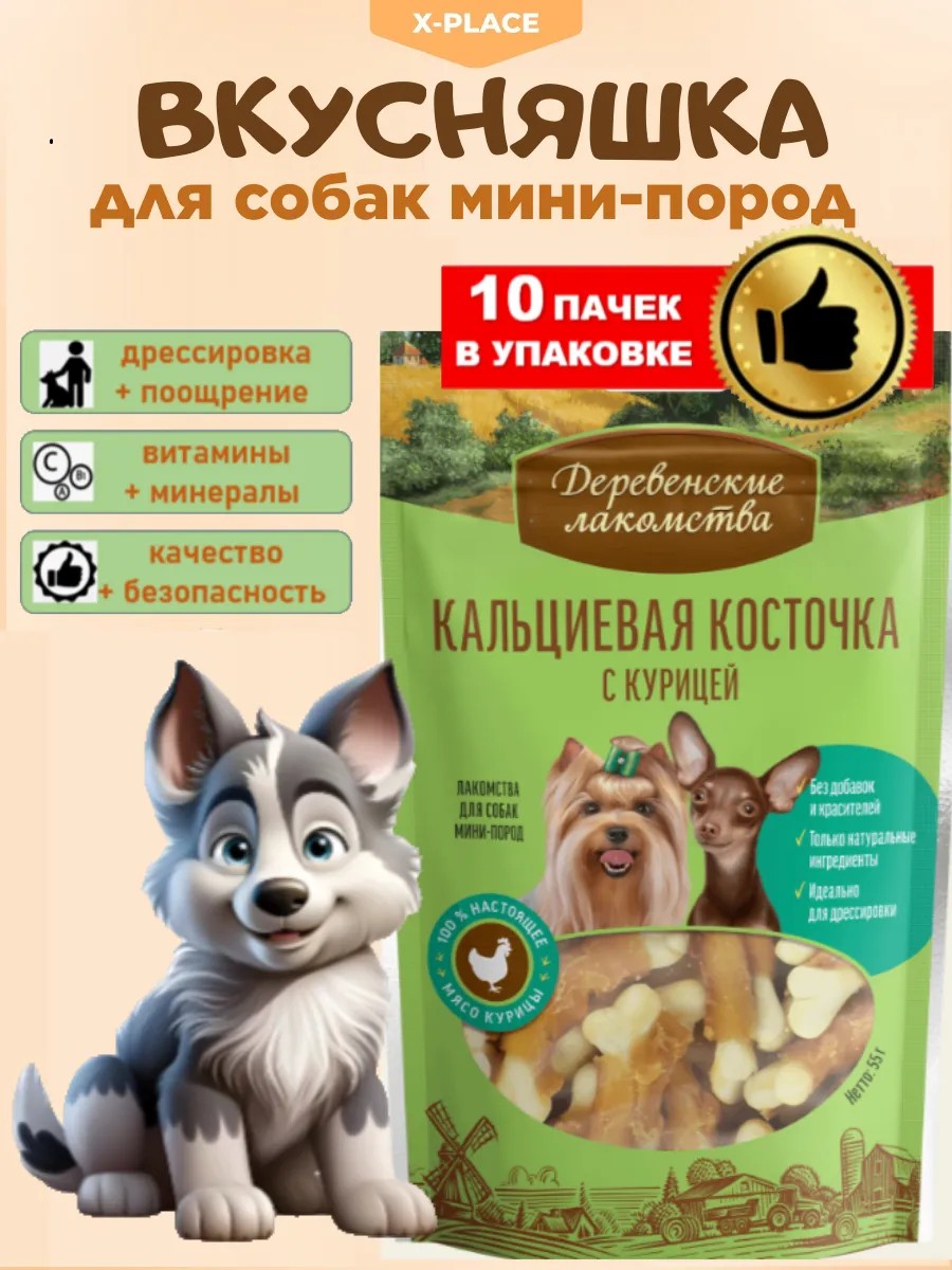 Удивите своего любимого питомца вкусняшкой "Кальциевая косточка с курицей" Деревенские лакомства. В одной упаковке сразу 10 шт по 55 г. Это полезные лакомства, обогащенные витаминами и менералами для собак мелких и средних пород. Лакомства идеальны для разных целей: дрессировки, чистки зубов или как просто угощение для вашего питомца.