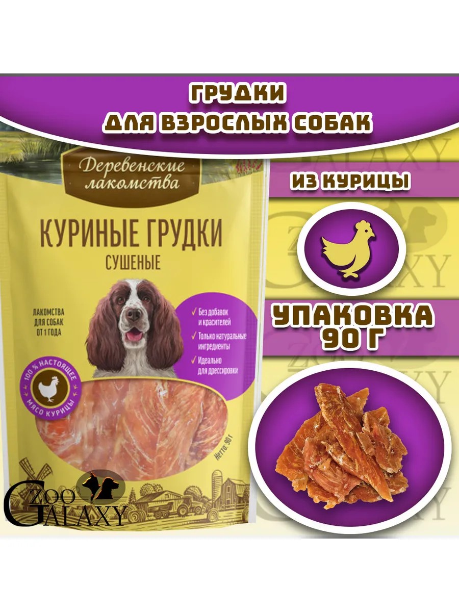 Деревенские лакомства Куриные грудки сушеные 100 % мяса для собак 90г