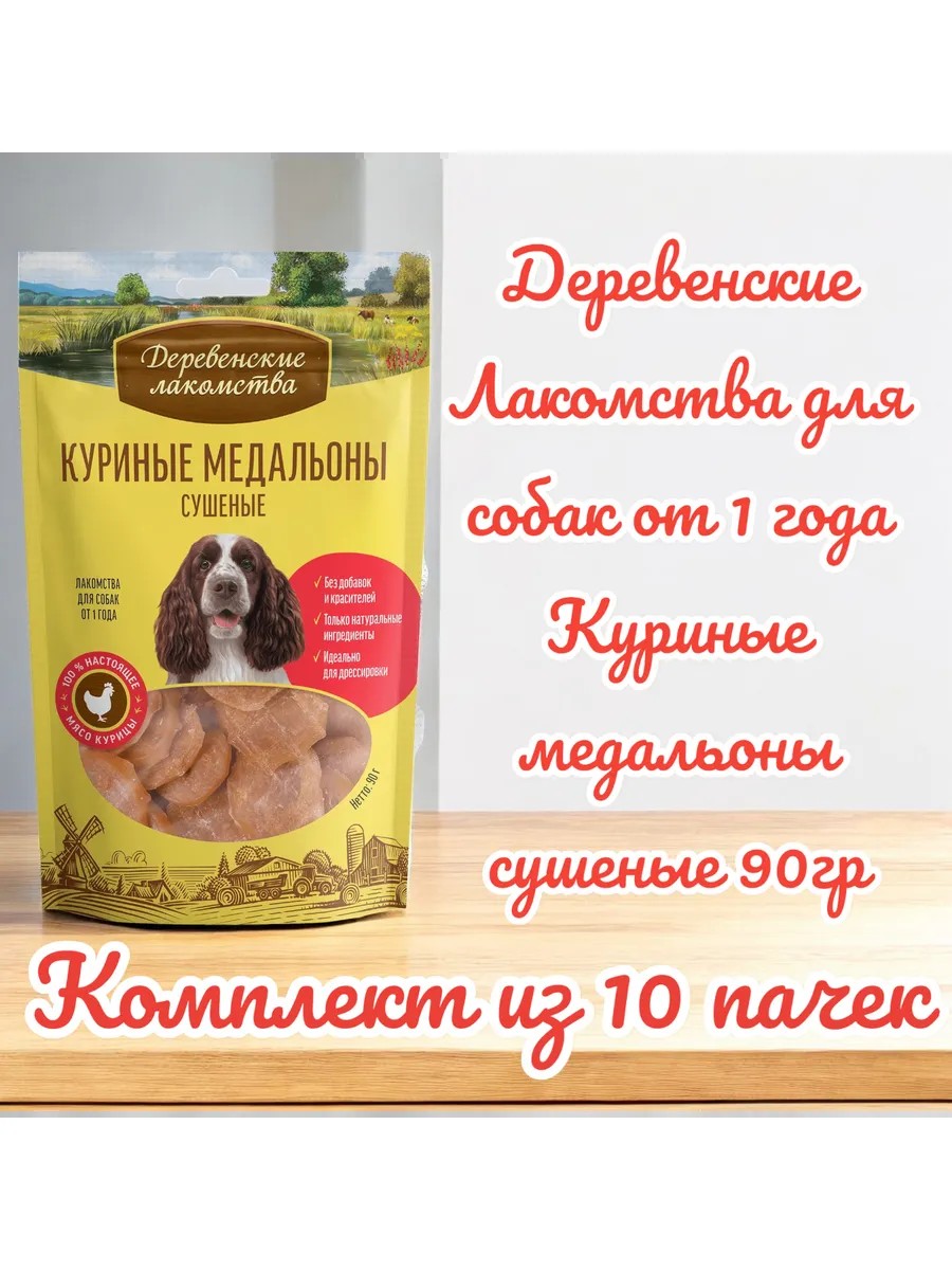 Деревенские лакомства Куриные медальоны сушеные для собак 90 г, 10 пачек