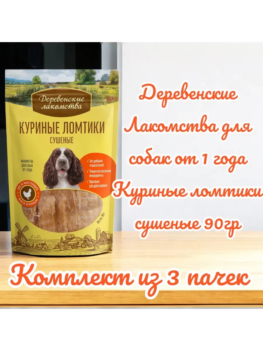 Деревенские лакомства Куриные ломтики сушеные для собак 90 г, 3 пачки