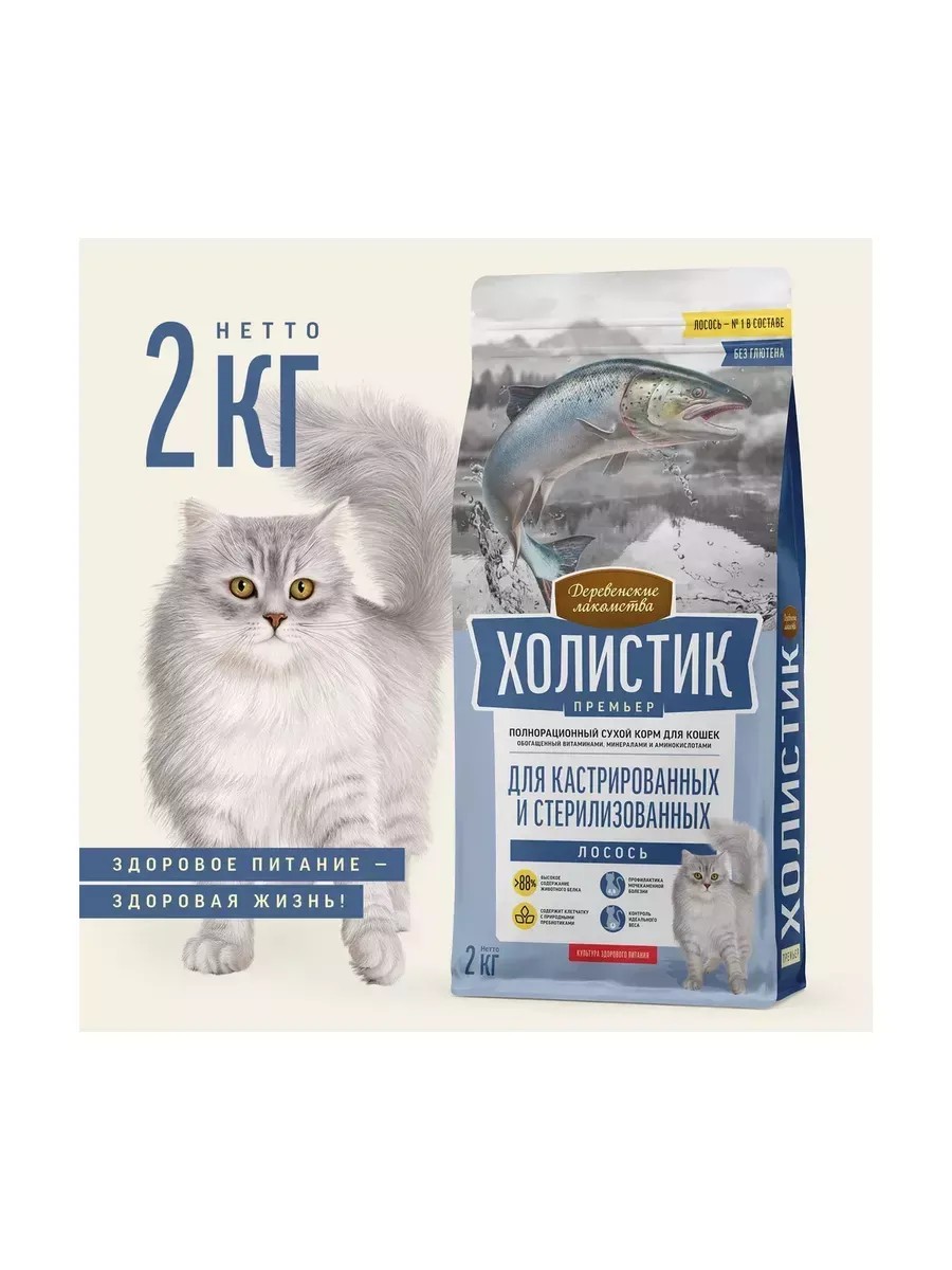 Деревенские лакомства Сухой корм для стерилизованных кошек с лососем 2 кг
