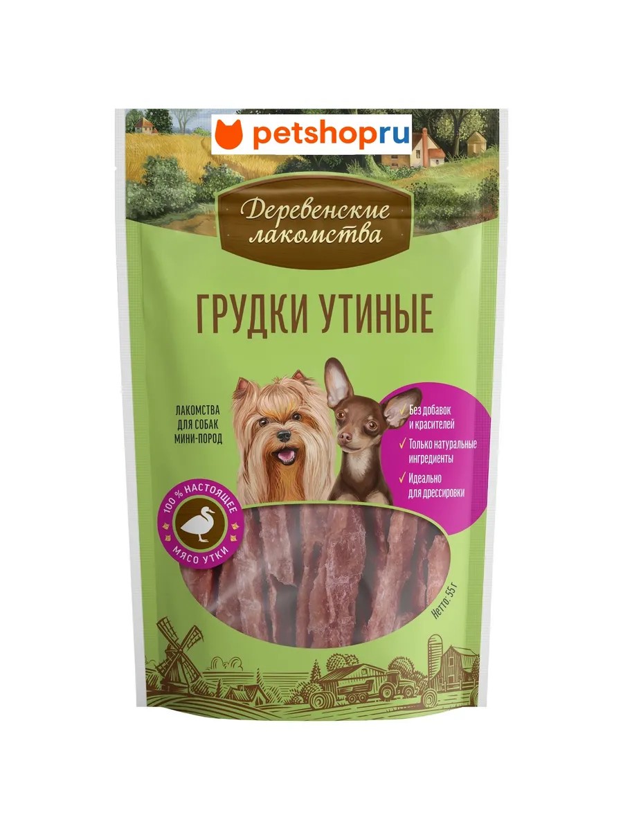 Деревенские лакомства Грудки утиные для малых и миниатюрных пород, 55г