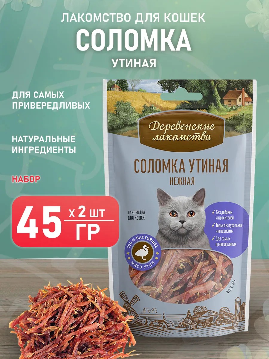 Деревенские лакомства Лакомство соломка утиная для кошек нежная 45 г 2 шт