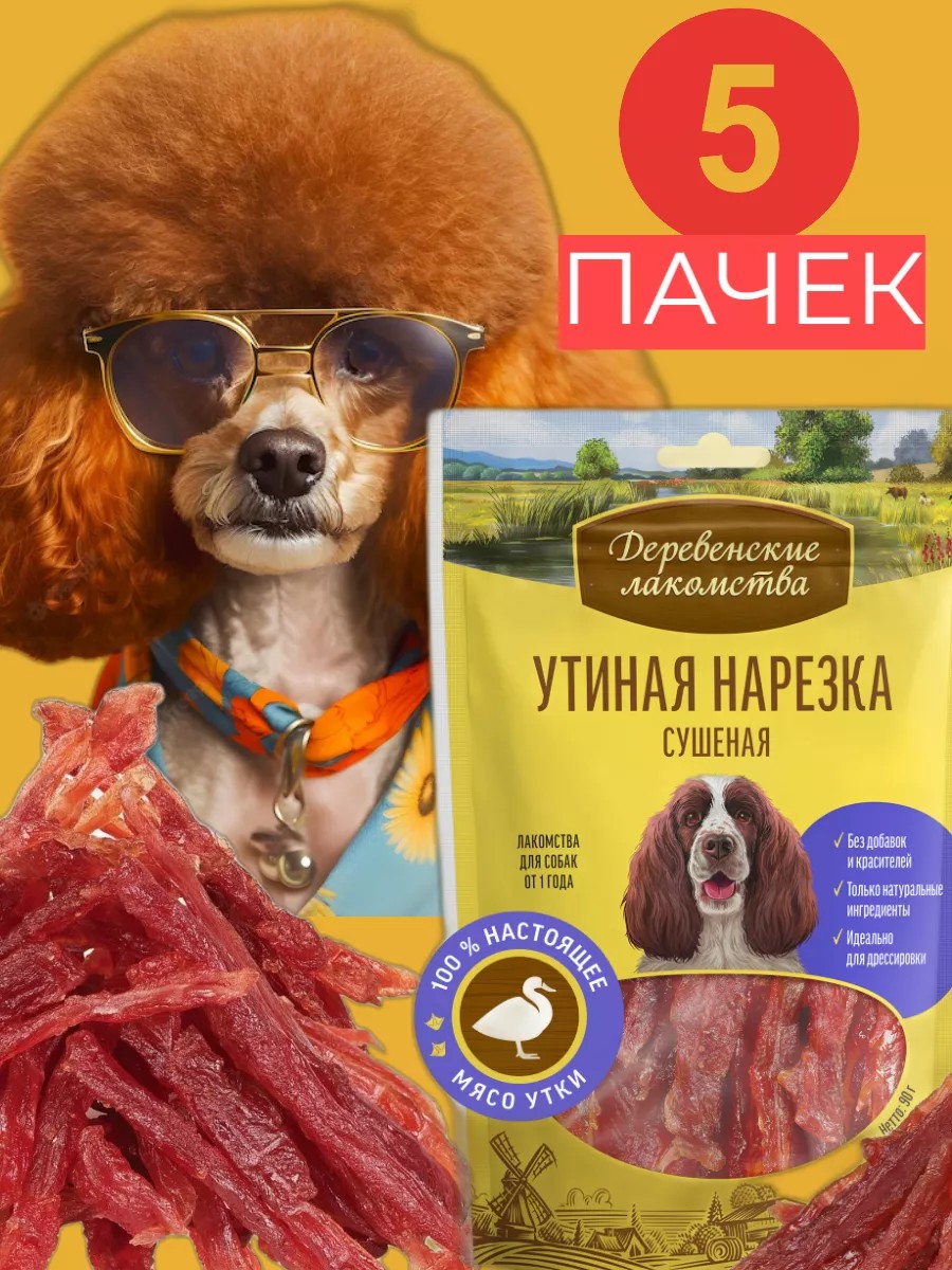 Деревенские лакомства утиная нарезка сушеная, 90г х5шт