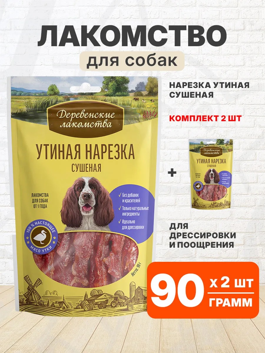 | Комплектация | Лакомства деревенские для собак утиная сушеная нарезка 90 гр - 2 шт |
