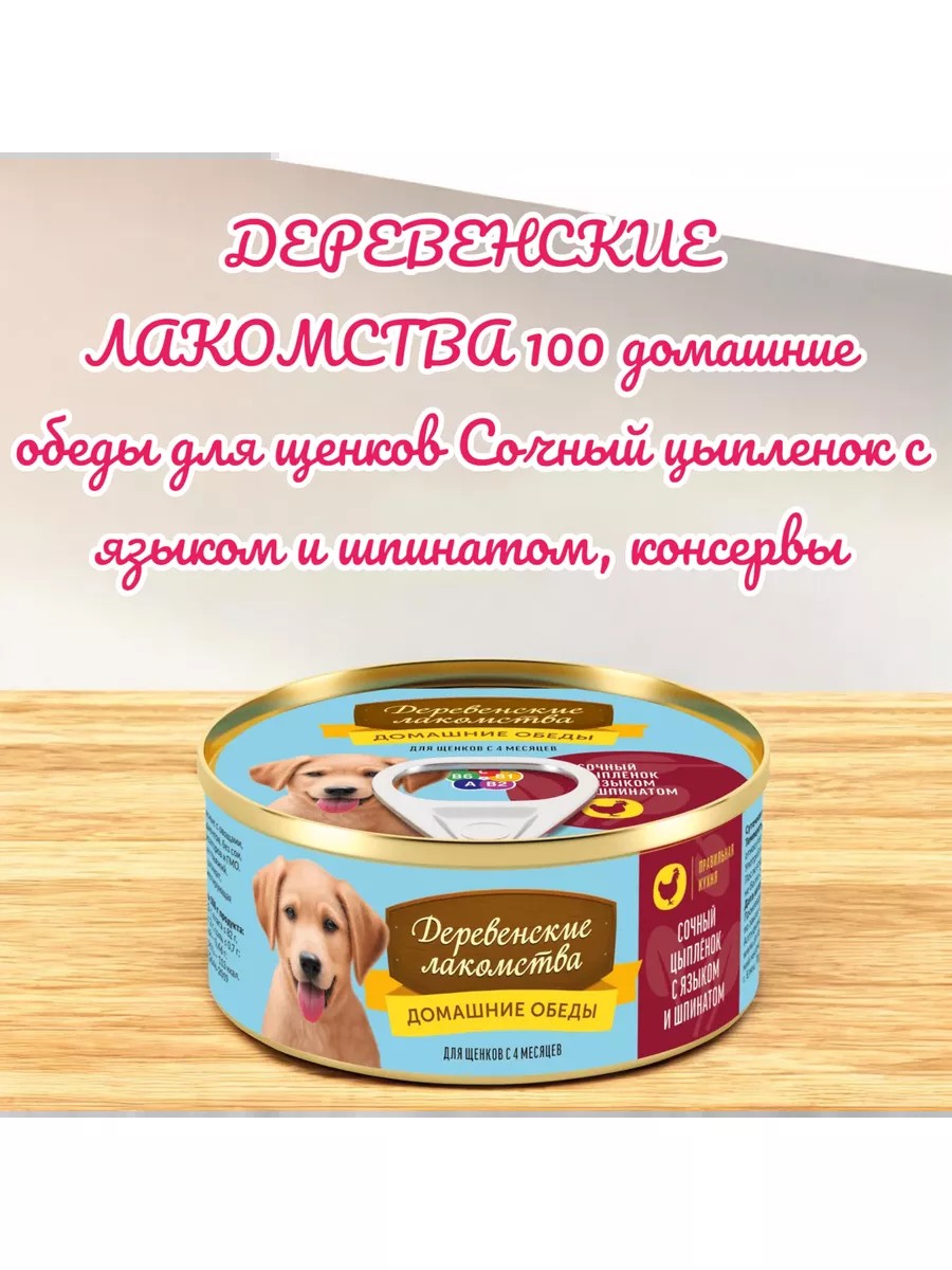 Деревенские лакомства Корм для шенков Сочный цыпленок, язык, шпинат 100г
