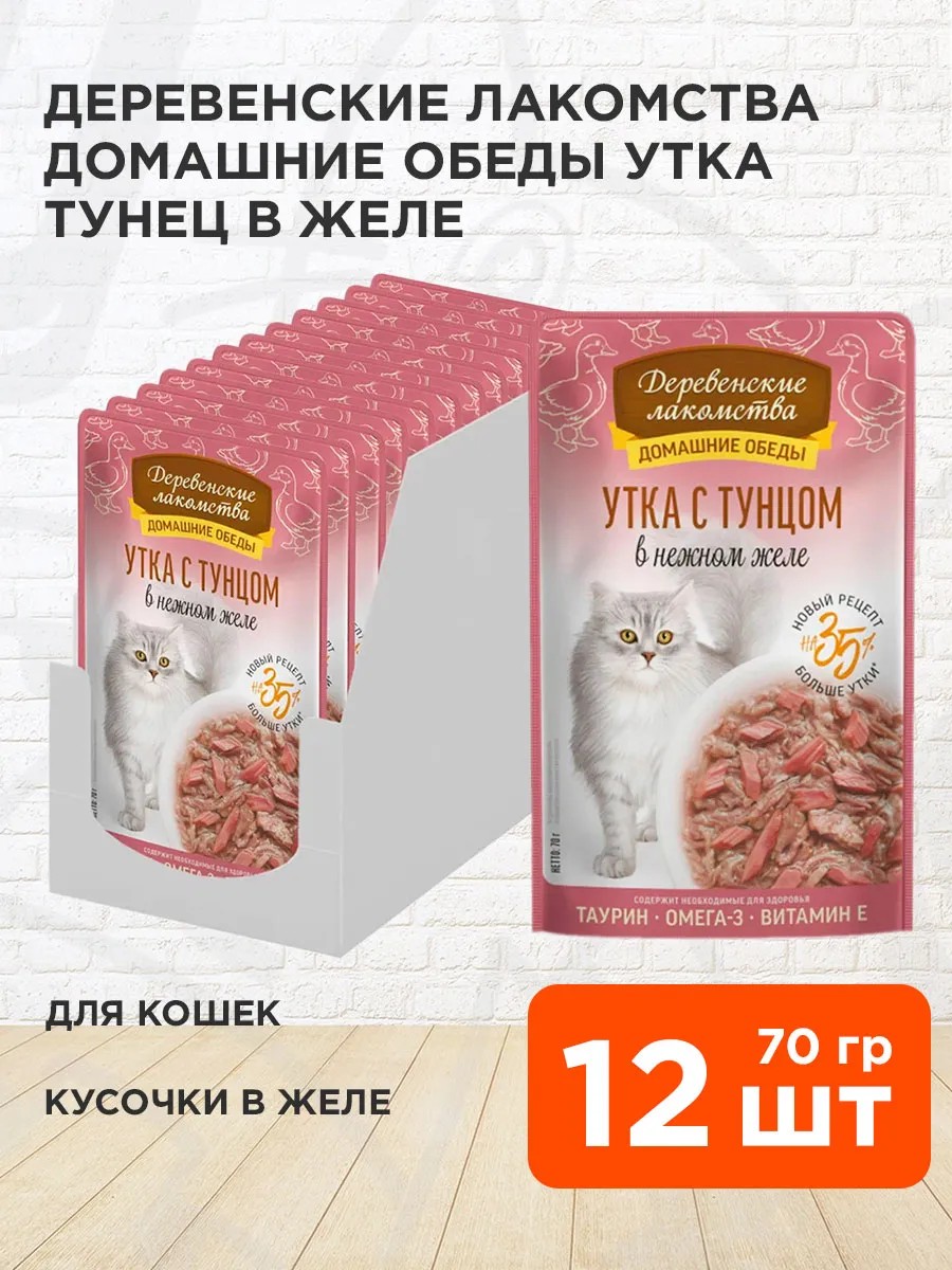 Деревенские лакомства Корм влажный Домашние Обеды для кошек утка тунец 70гр 12шт
