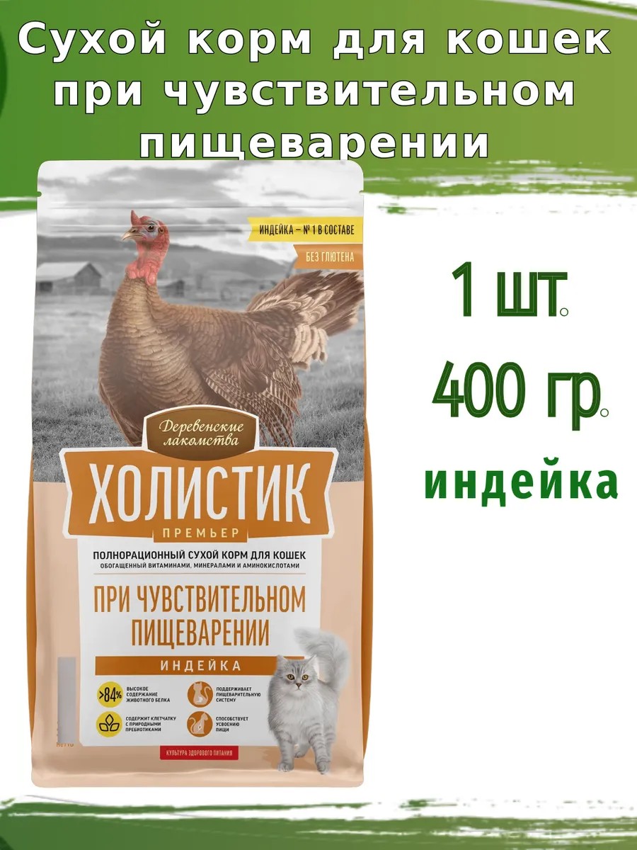 | Полное наименование товара | Деревенские лакомства Холистик Премьер сухой корм для кошек при чувствительном пищеварении, индейка |
