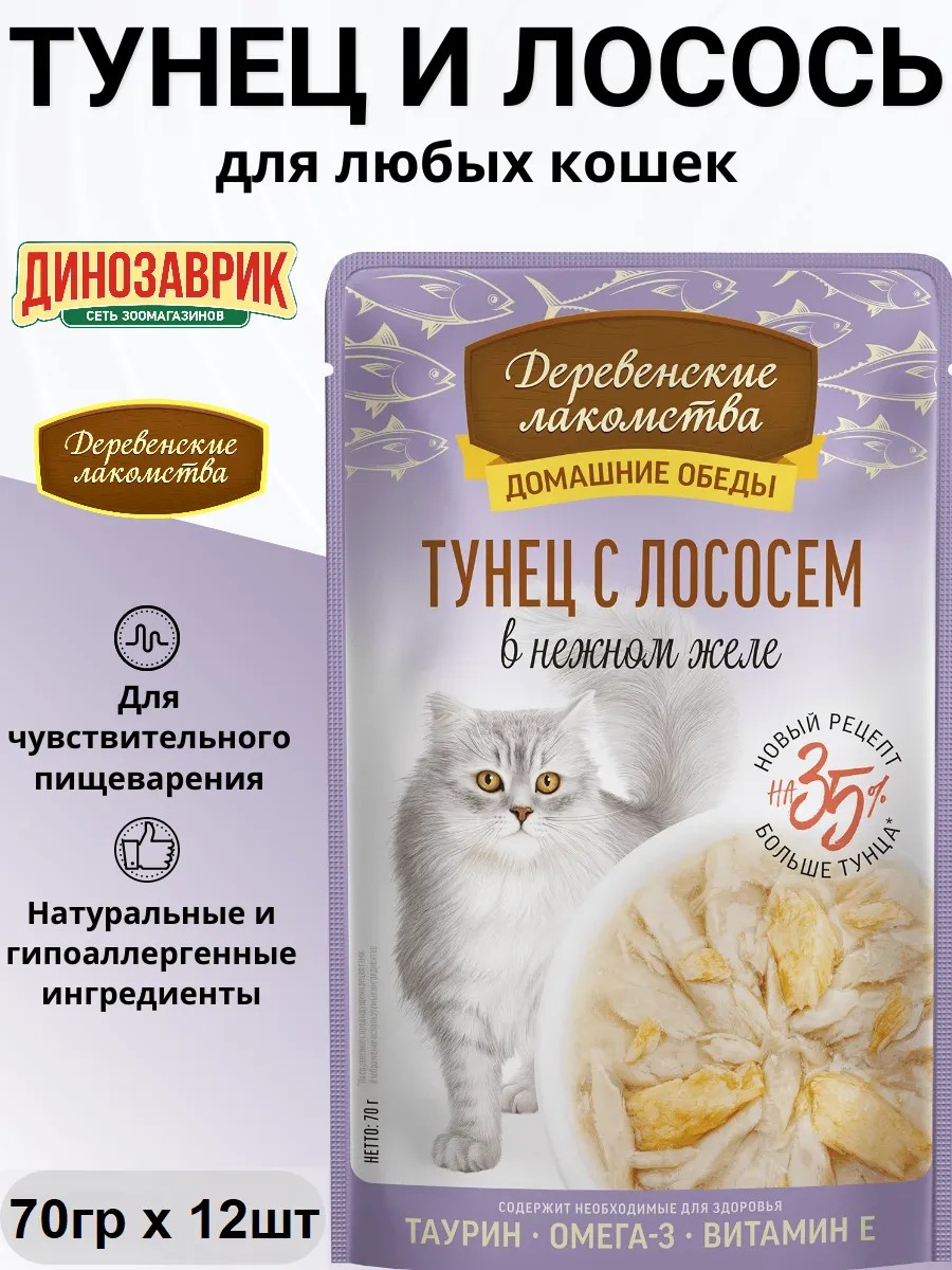 Деревенские лакомства Корм для любых кошек, из тунца с лососем 12шт х 70гр