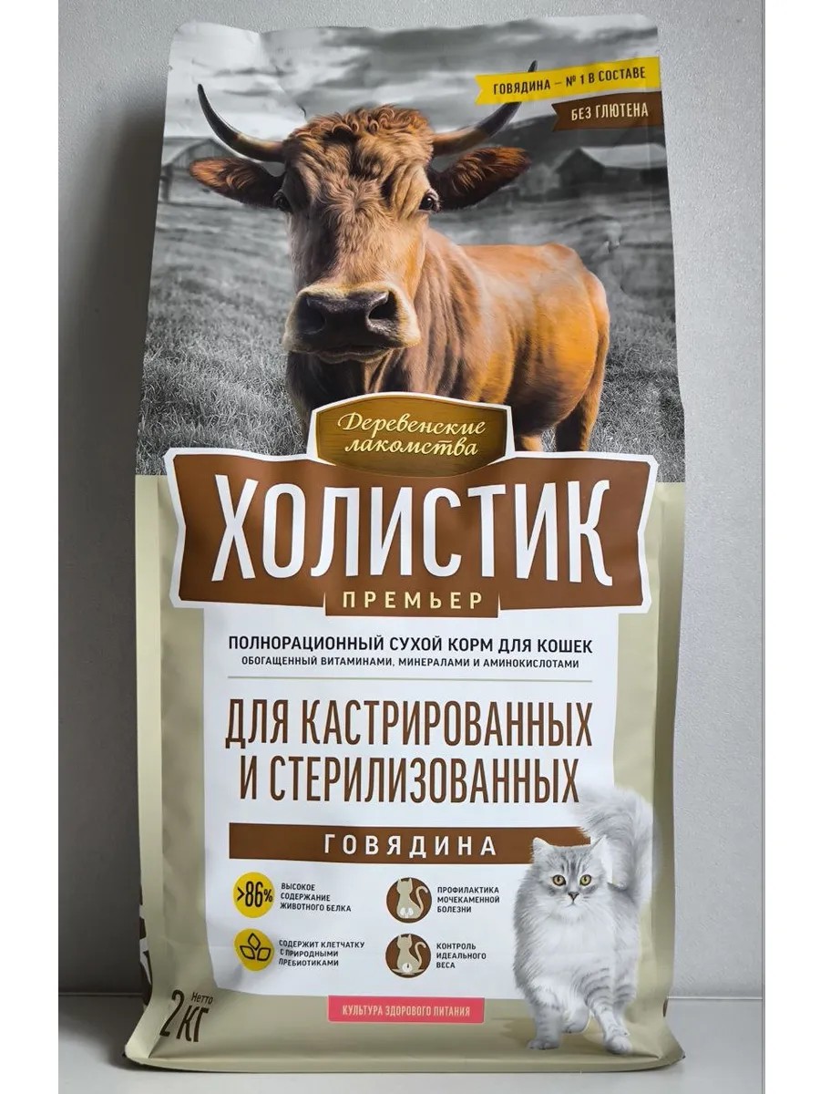 Деревенские лакомства для стерилизованных кошек с говядиной 2 кг