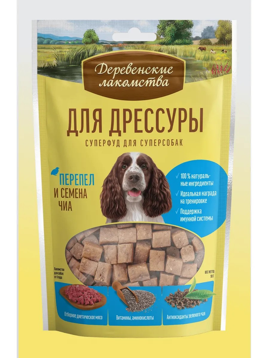Деревенские лакомства Для дрессуры Перепел и семена чиа 1 шт.