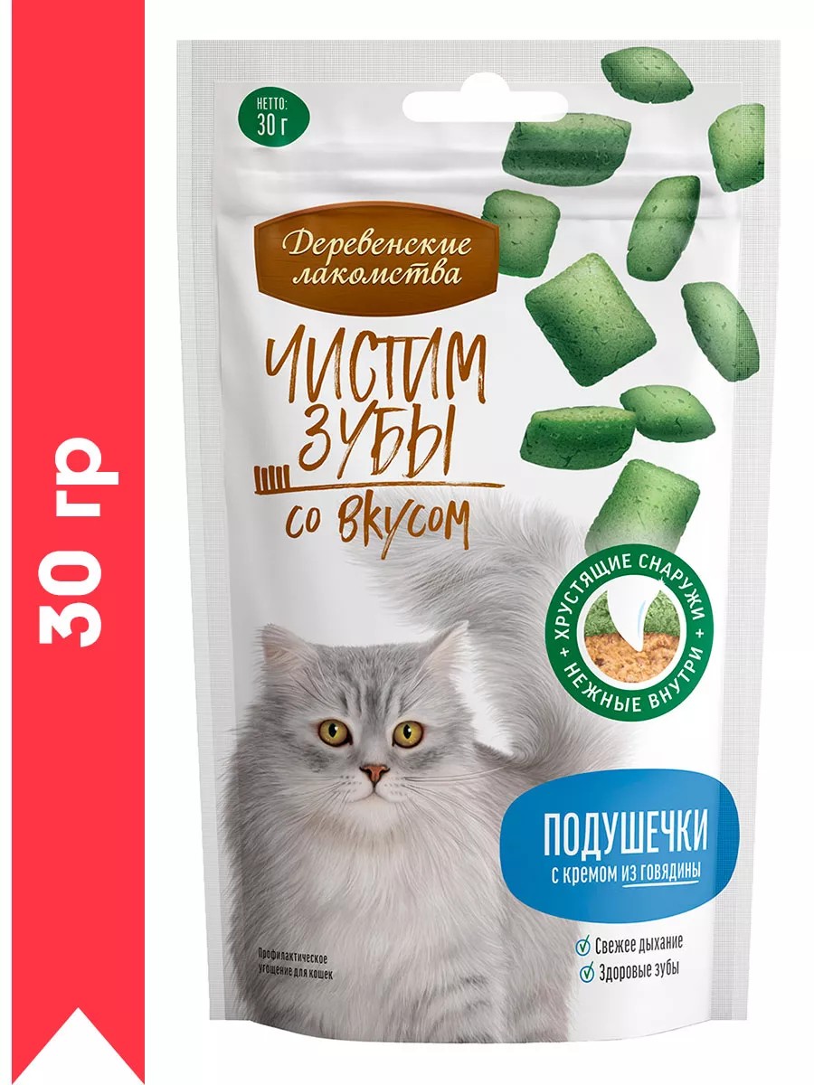 Деревенские лакомства Лакомства для кошек подушечки с кремом из говядины 30 гр