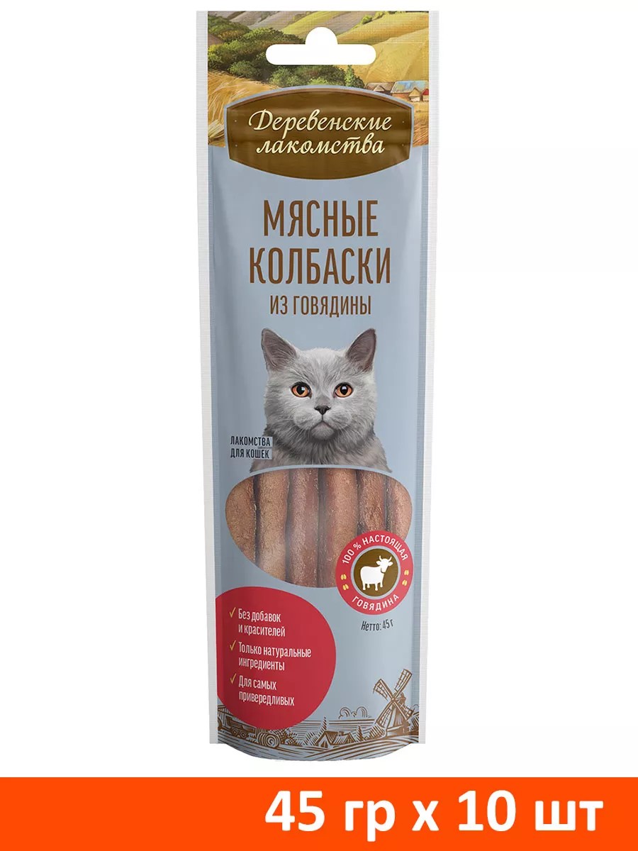Деревенские лакомства Лакомства для кошек колбаски с говядиной 45 гр 10 шт