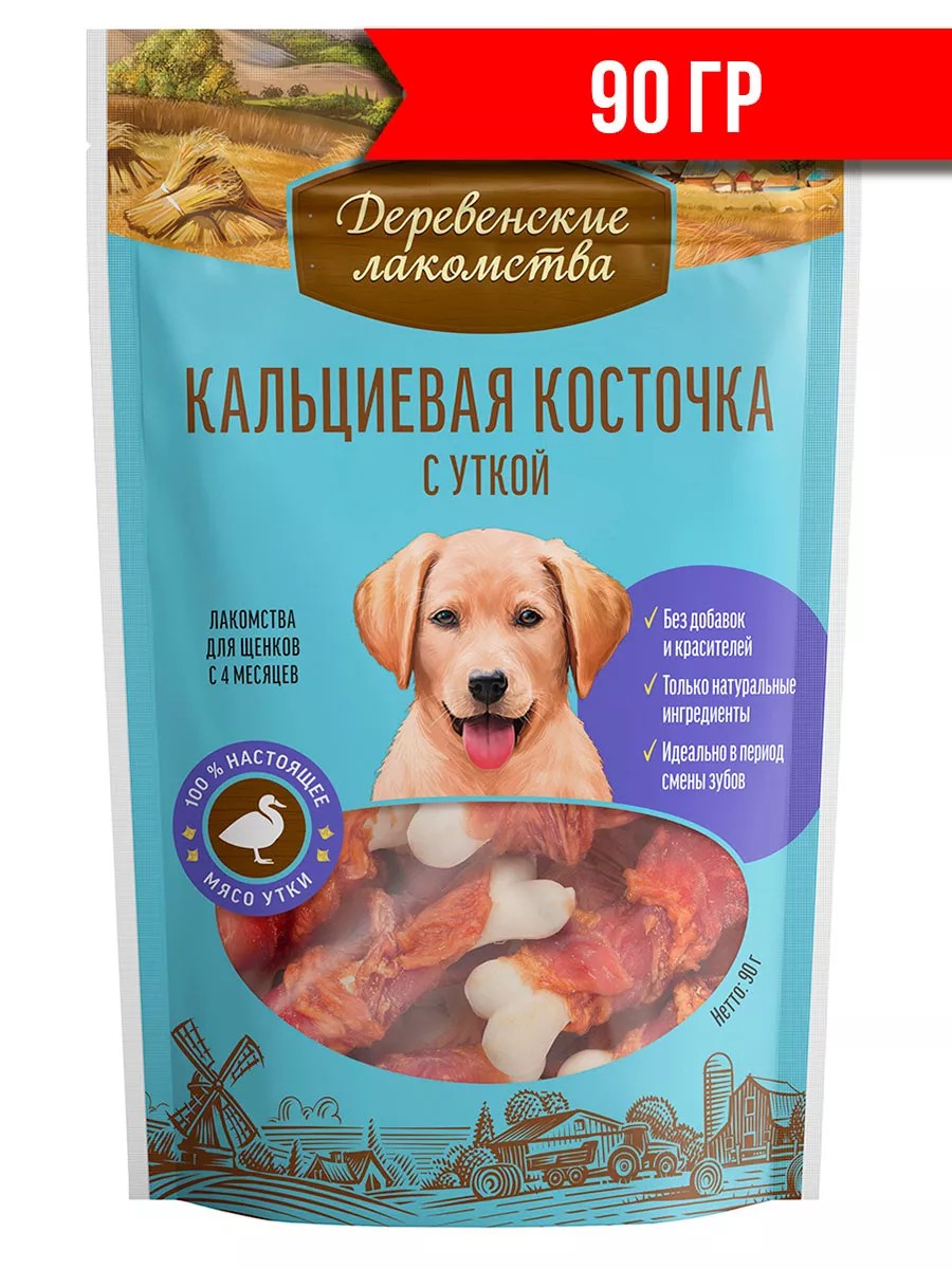Деревенские лакомства Лакомства для щенков кальциевая косточка с уткой 90 гр