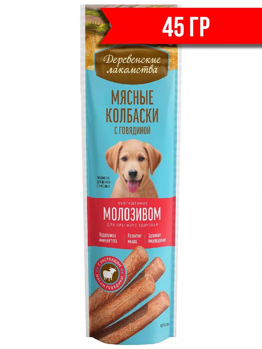 Деревенские лакомства Лакомства для щенков мясные колбаски с говядиной 45 гр