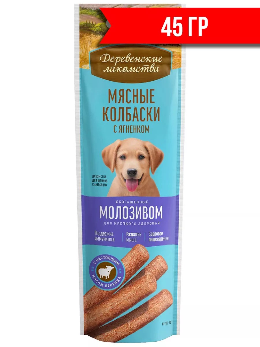 Деревенские лакомства Лакомства для щенков мясные колбаски с ягненком 45 гр