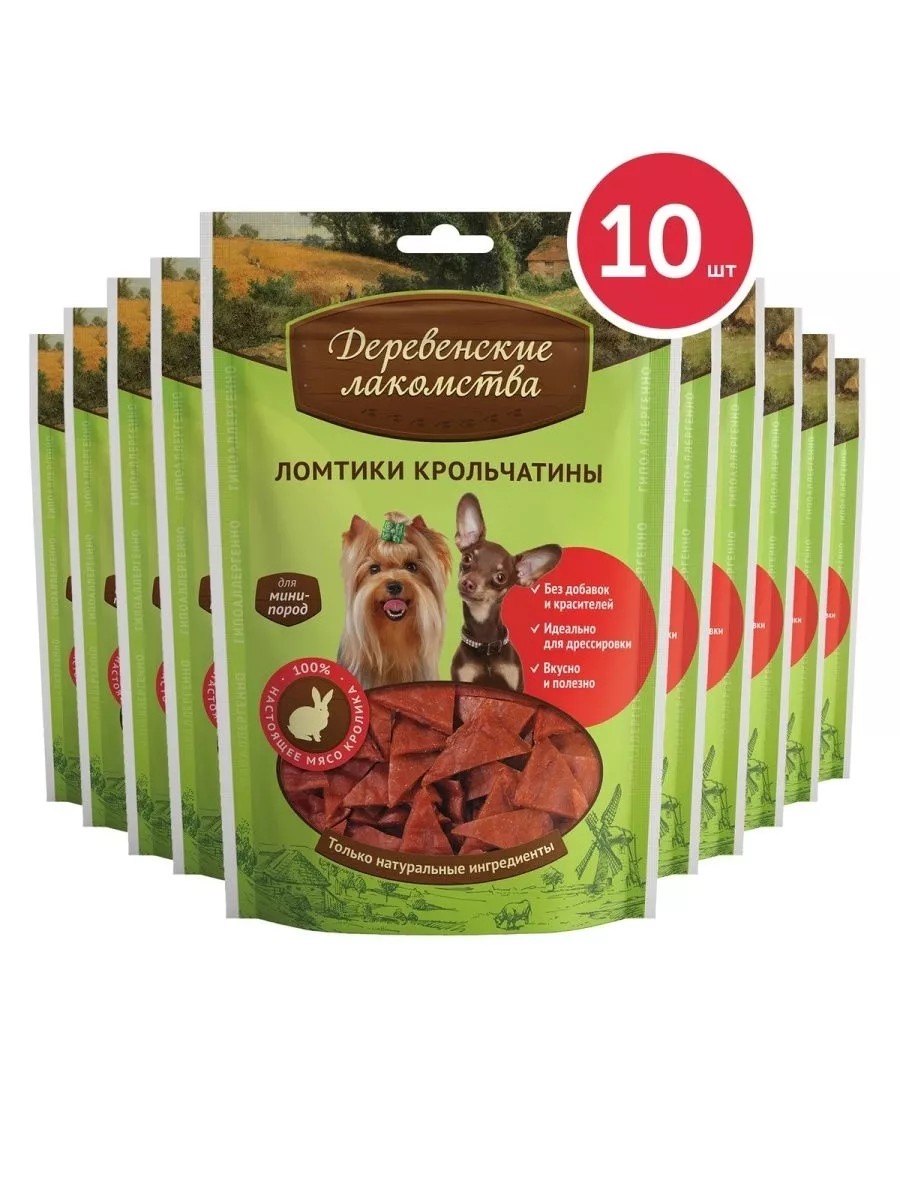 Деревенские лакомства Лакомства ломтики крольчатины для мелких собак 10 шт х 55г