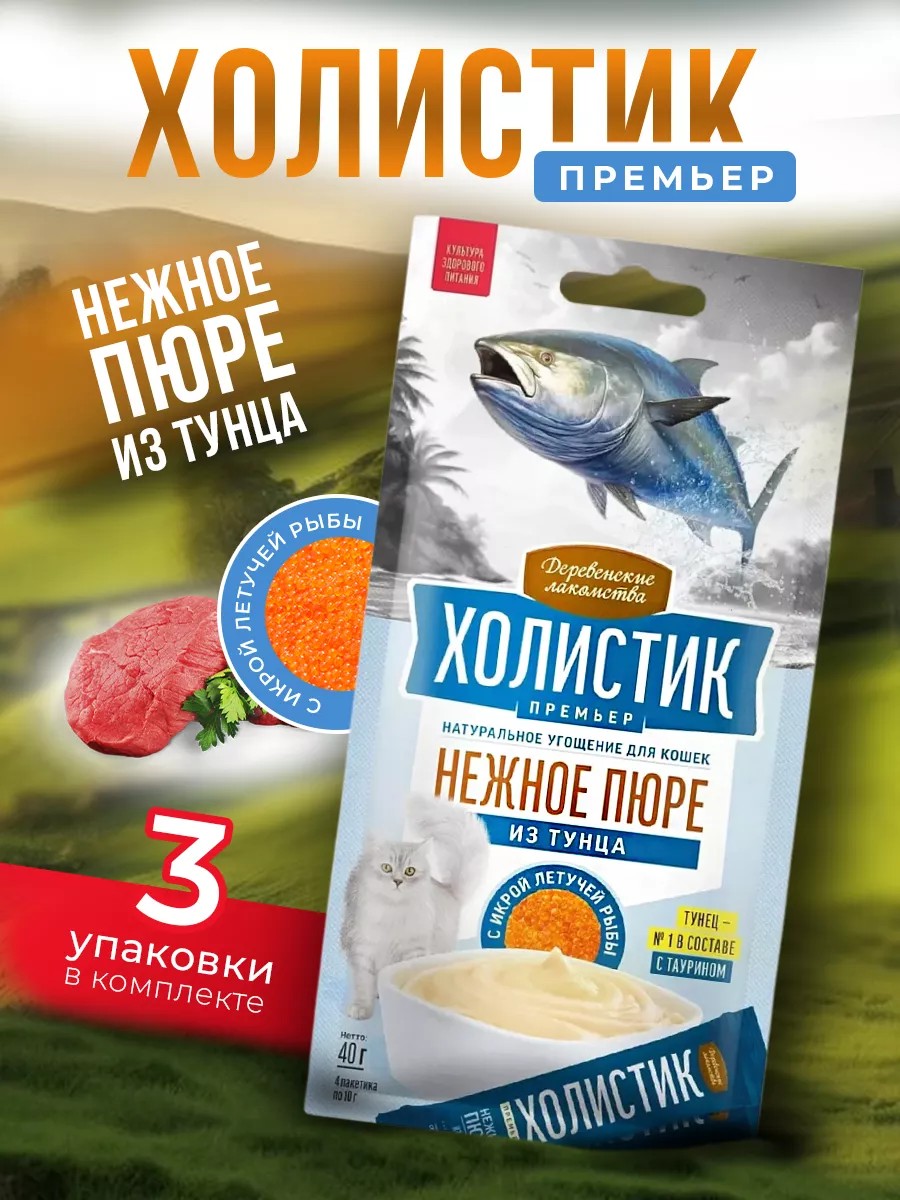Деревенские лакомства Холистик Премьер Пюре из тунца с икрой летучей рыбы, 3 уп