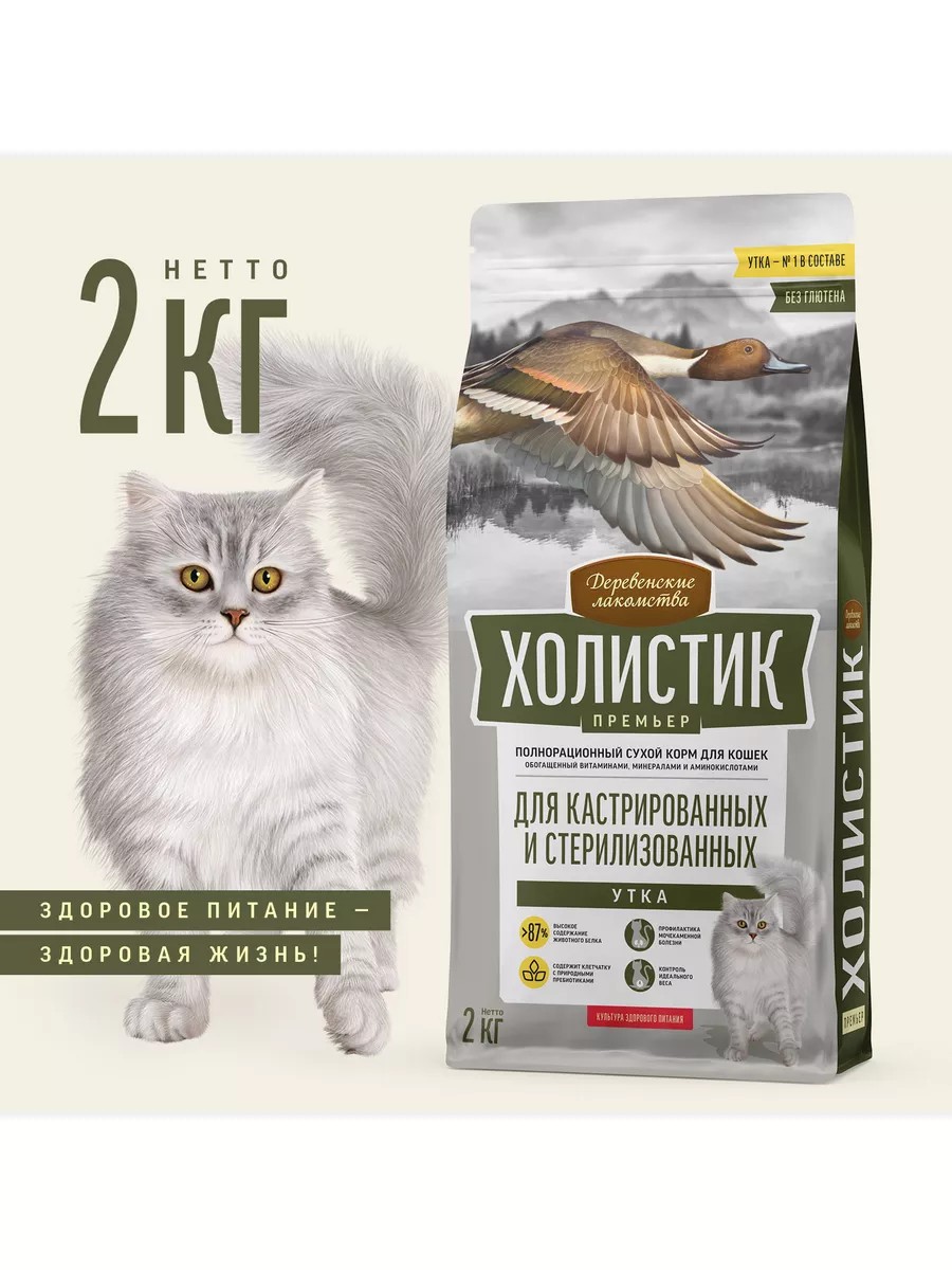 Деревенские лакомства Холистик Премьер для стерилизованных кошек Утка 2кг