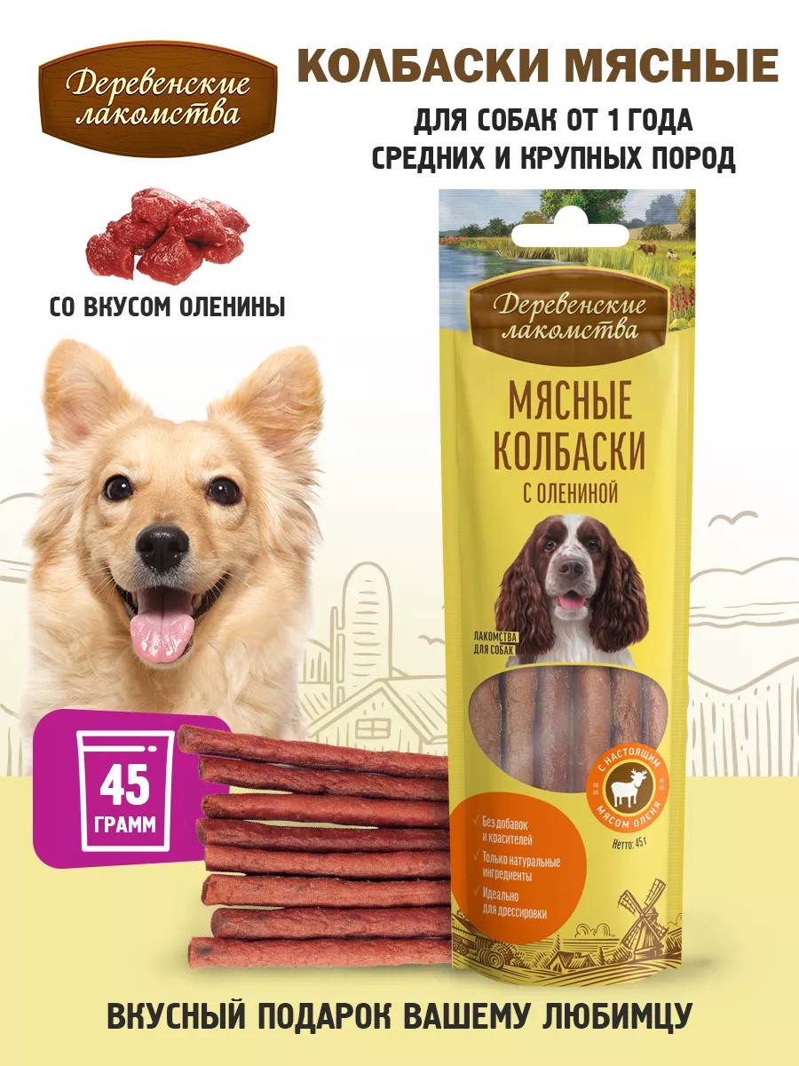 Деревенские лакомства Мясные колбаски с олениной для собак, 1 уп