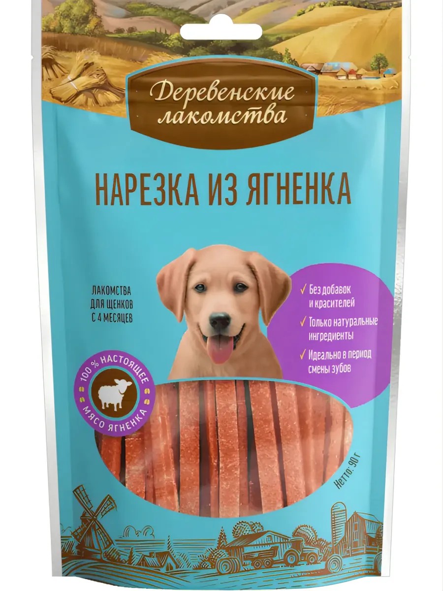 Деревенские лакомства Нарезка из Ягненка Лакомство для Щенков 90г 1шт