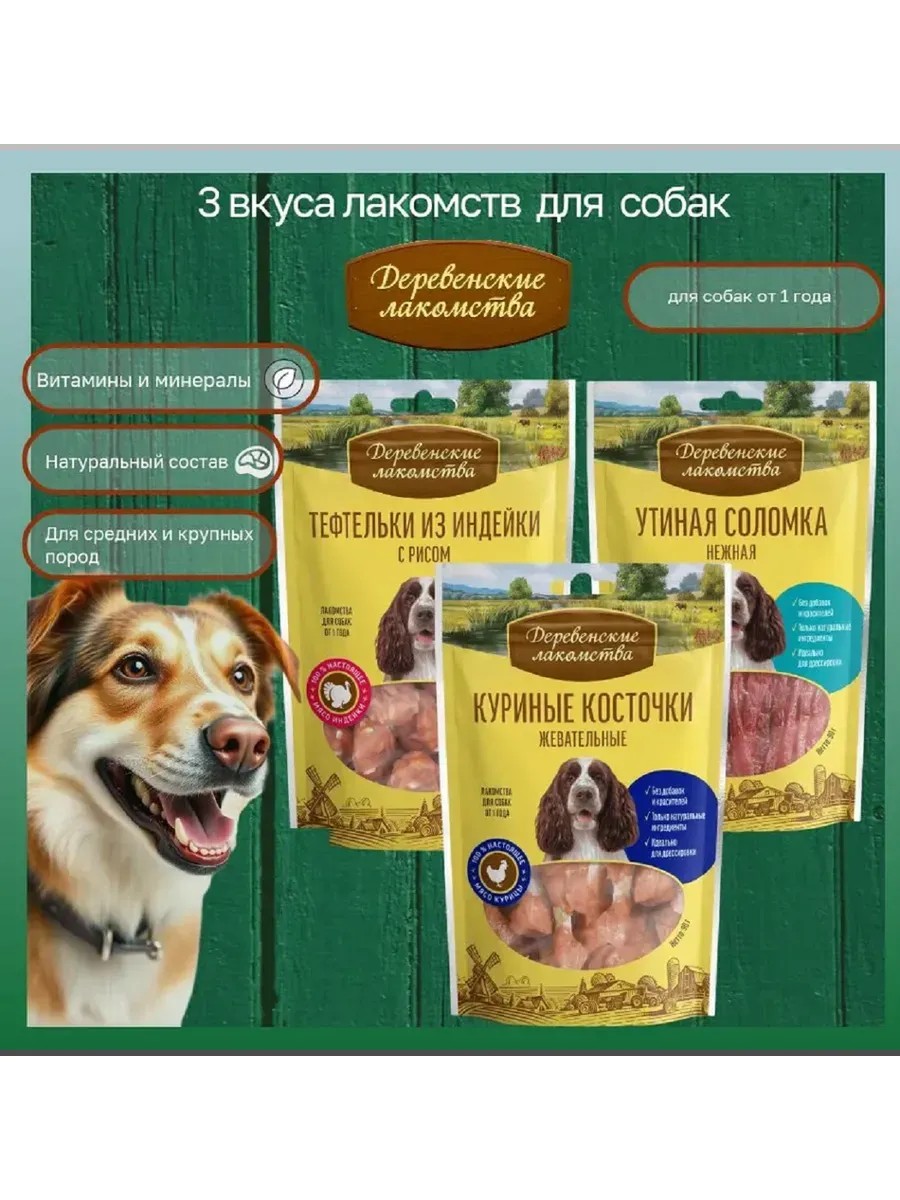 Комплект лакомств для собак из 3 пачек - это идеальный подарок для вашего пушистого друга! В комплекте вы найдете тефтели из индейки с рисом, куриные косточки жевательные и утиная соломка нежная. Эти лакомства помогут вашему питомцу получить необходимую ему пищу и удовольствие от вкусной еды.