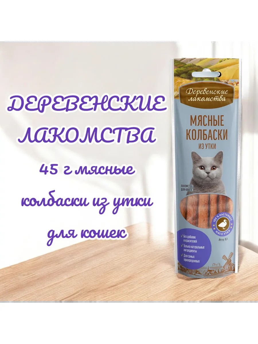 Деревенские лакомства Мясные колбаски из утки для кошек 45 г