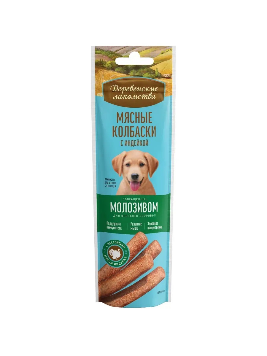 Деревенские лакомства Мясные колбаски с индейкой и молозивом д щенков 45г