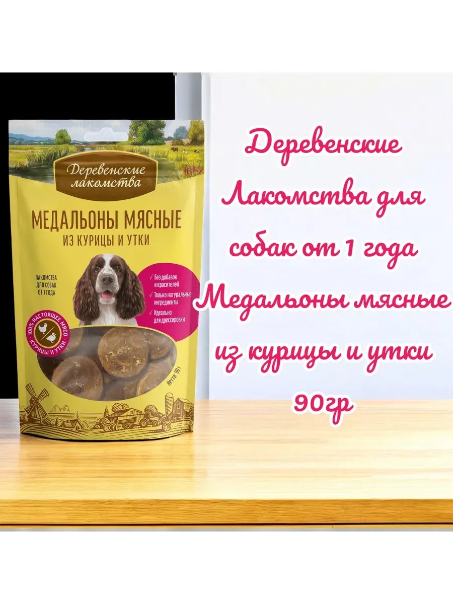 Деревенские лакомства Медальоны мясные из курицы и утки для собак 90гр