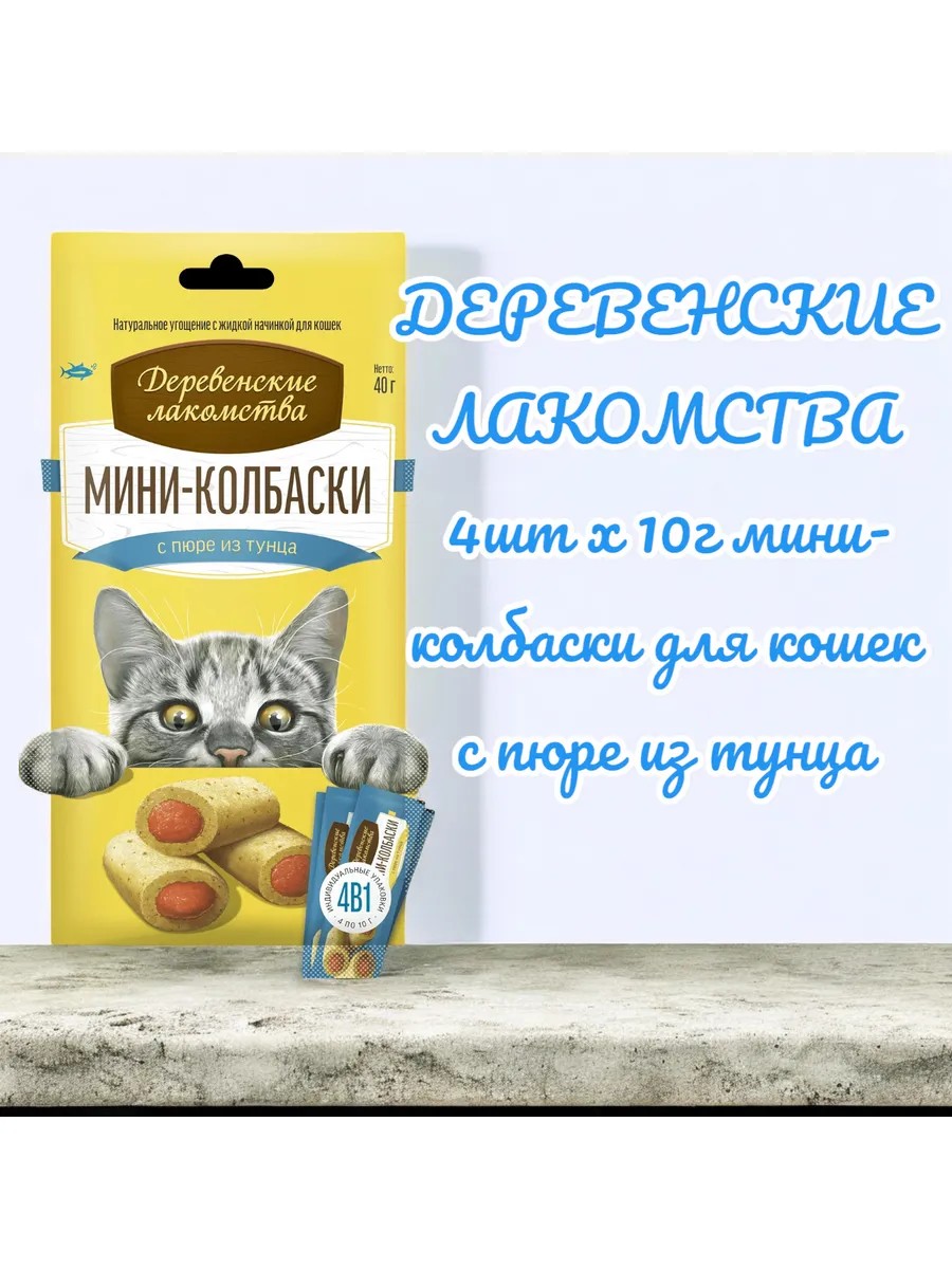 Деревенские лакомства Мини-колбаски для кошек с пюре из тунца 4шт х 10г