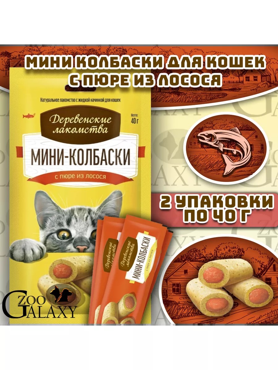 Деревенские лакомства Мини-колбаски для кошек с лососем 2х40г