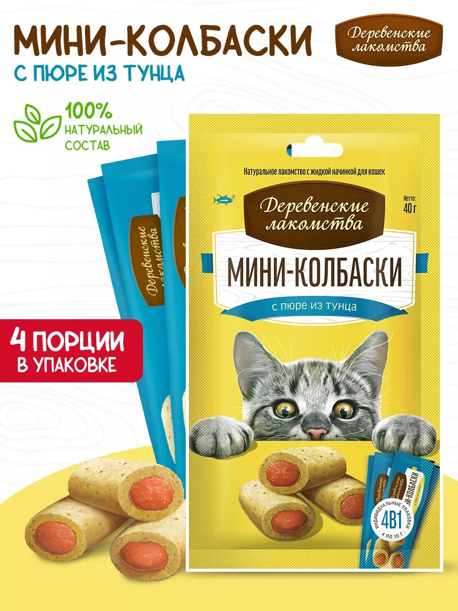 Кошки очень любят мясные колбаски. Кошки обожают нежное пюре. Мы соединили эти два лакомства, чтобы создать настоящий деликатес. Натуральное угощение из настоящего мяса в сочетании с ярким вкусом нежного пюре из тунца не оставят ни одну кошку равнодушной, а входящие в состав таурин и витамин Е помогут укрепить иммунитет.