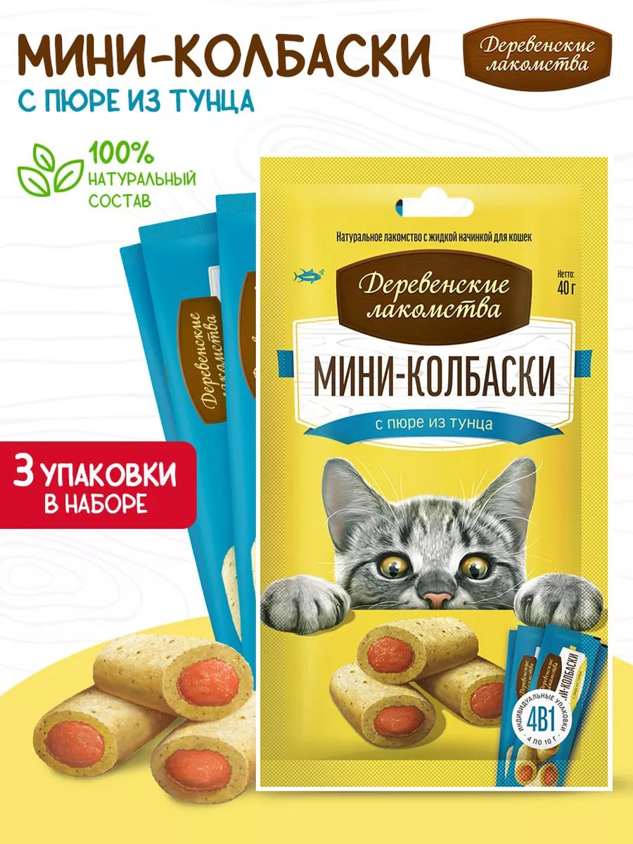 Кошки очень любят мясные колбаски. Кошки обожают нежное пюре. Мы соединили эти два лакомства, чтобы создать настоящий деликатес. Натуральное угощение из настоящего мяса в сочетании с ярким вкусом нежного пюре из тунца не оставят ни одну кошку равнодушной, а входящие в состав таурин и витамин Е помогут укрепить иммунитет.